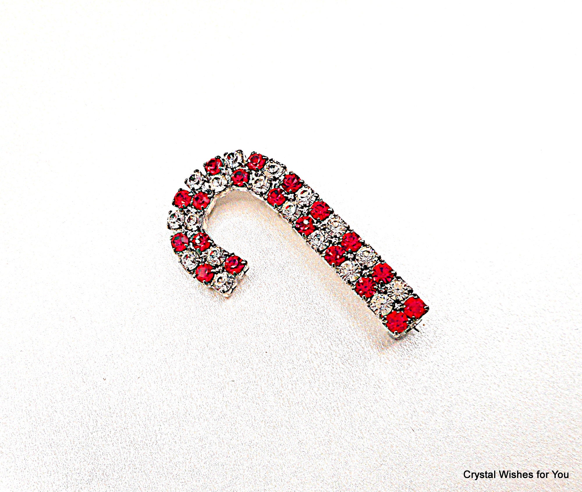 Add a touch of timeless holiday charm to your ensemble with this exquisite Vintage Candy Cane Brooch Pin. Dating back to the late 1900s, this elegant piece features a double row of prong-set glass rhinestones in festive red and clear hues. The silver-tone metal adds a classic touch, making it a perfect accessory for holiday gatherings or a unique gift for someone special.