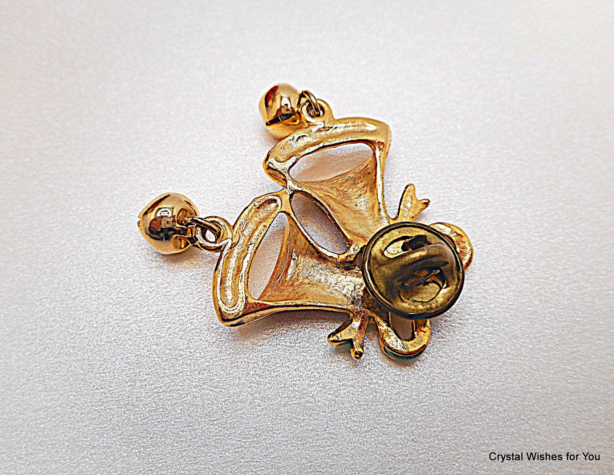 Tiny jingle bell dangles add a whimsical element to this gold tone metal pin, creating a subtle jingling sound as you move. The attention to detail in the design makes this lapel pin a miniature work of art, perfect for celebrating the magic of Christmas.