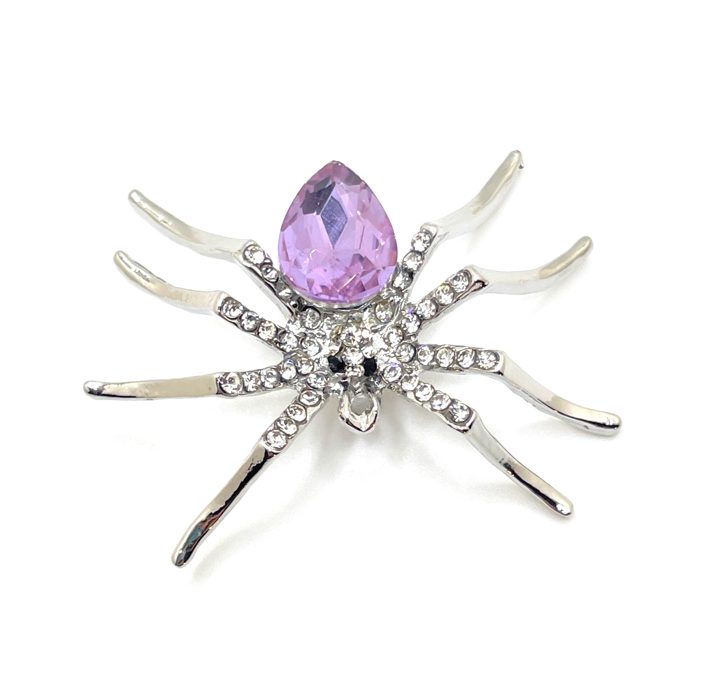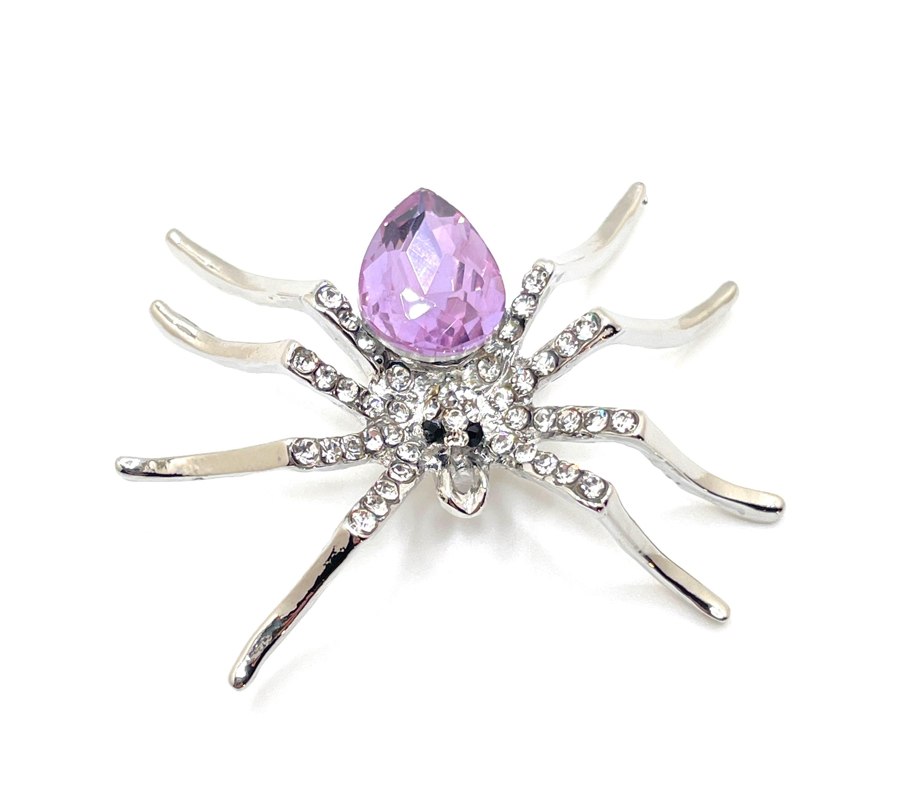 Sparkling Rhinestone Spider Brooch Lapel Pin or Pendant | Lavender Teardrop CZ | Silver Tone | Halloween Jewelry
