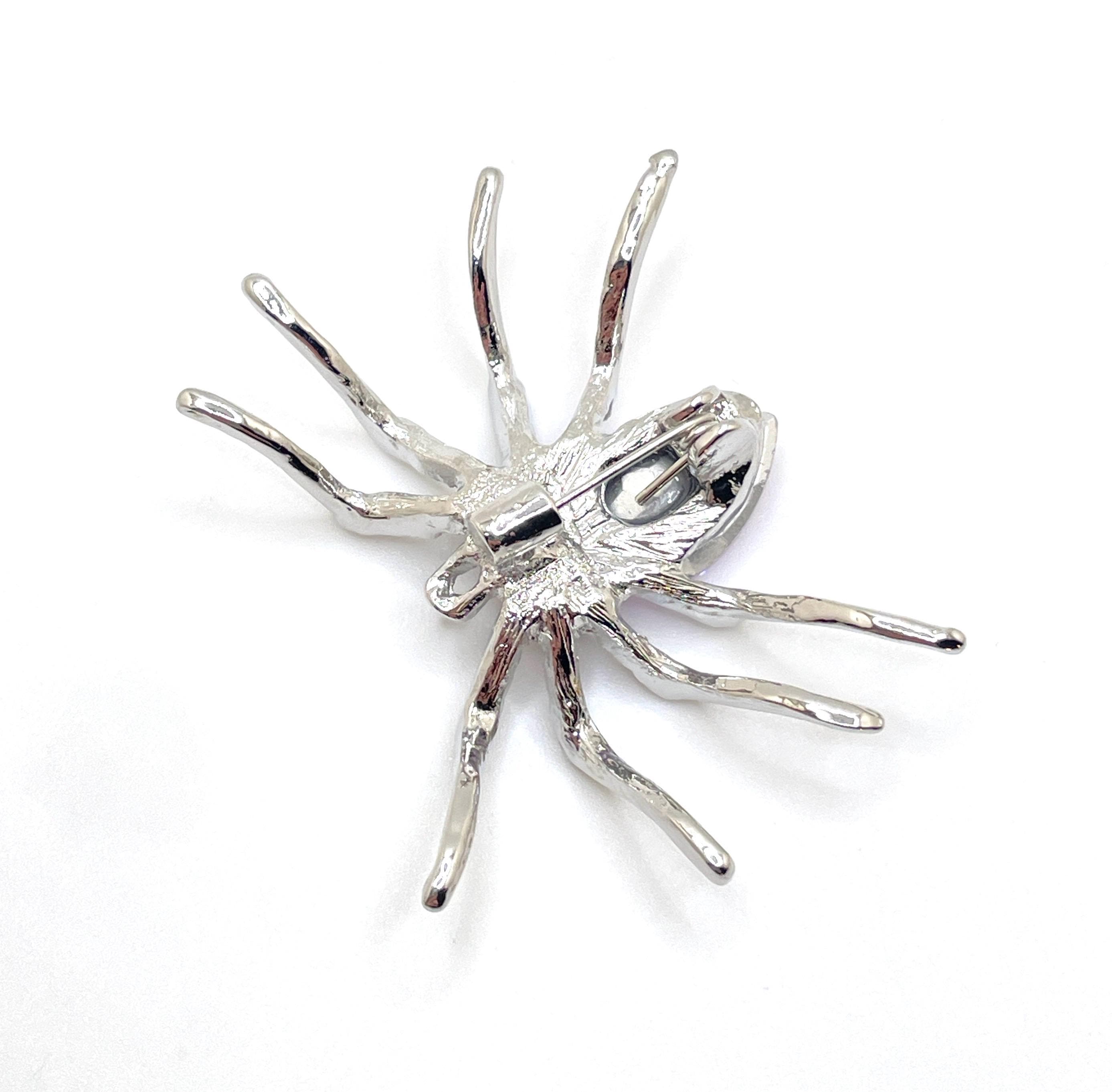 Add a touch of spooky elegance to your style with this sparkling spider pin that also doubles as a pendant. Its body features a striking teardrop-shaped lavender cubic zirconia (14mm x 9mm), handset in silver tone metal. The head and body shimmer with pave-set clear rhinestones, while jet-black rhinestone eyes complete the haunting detail.