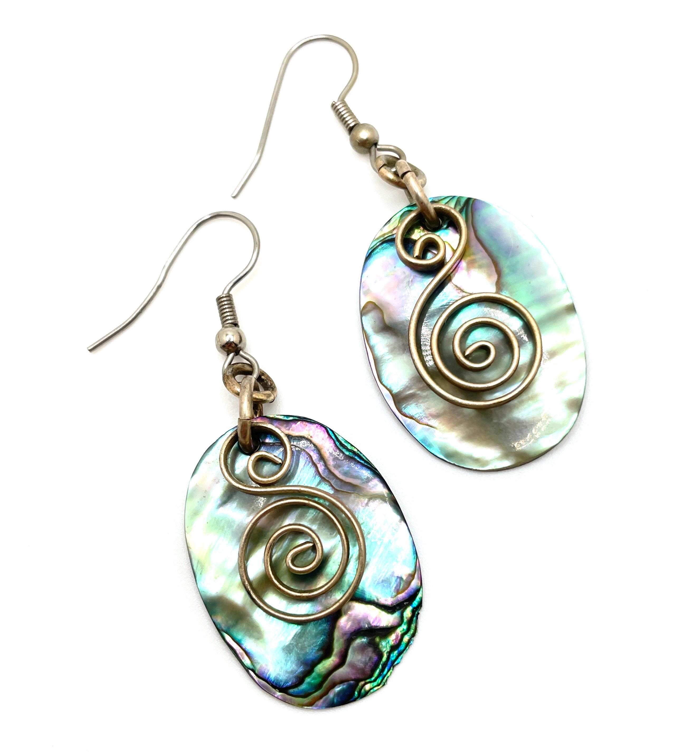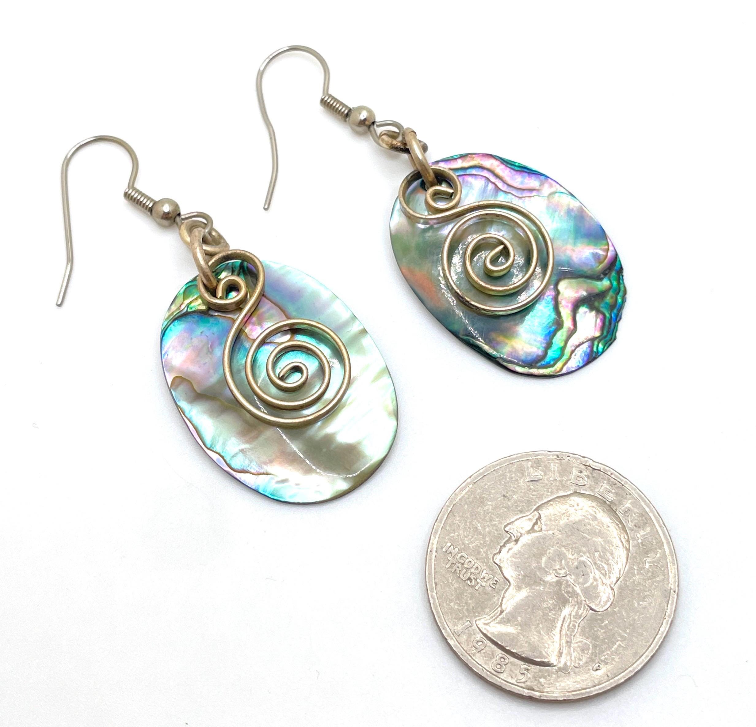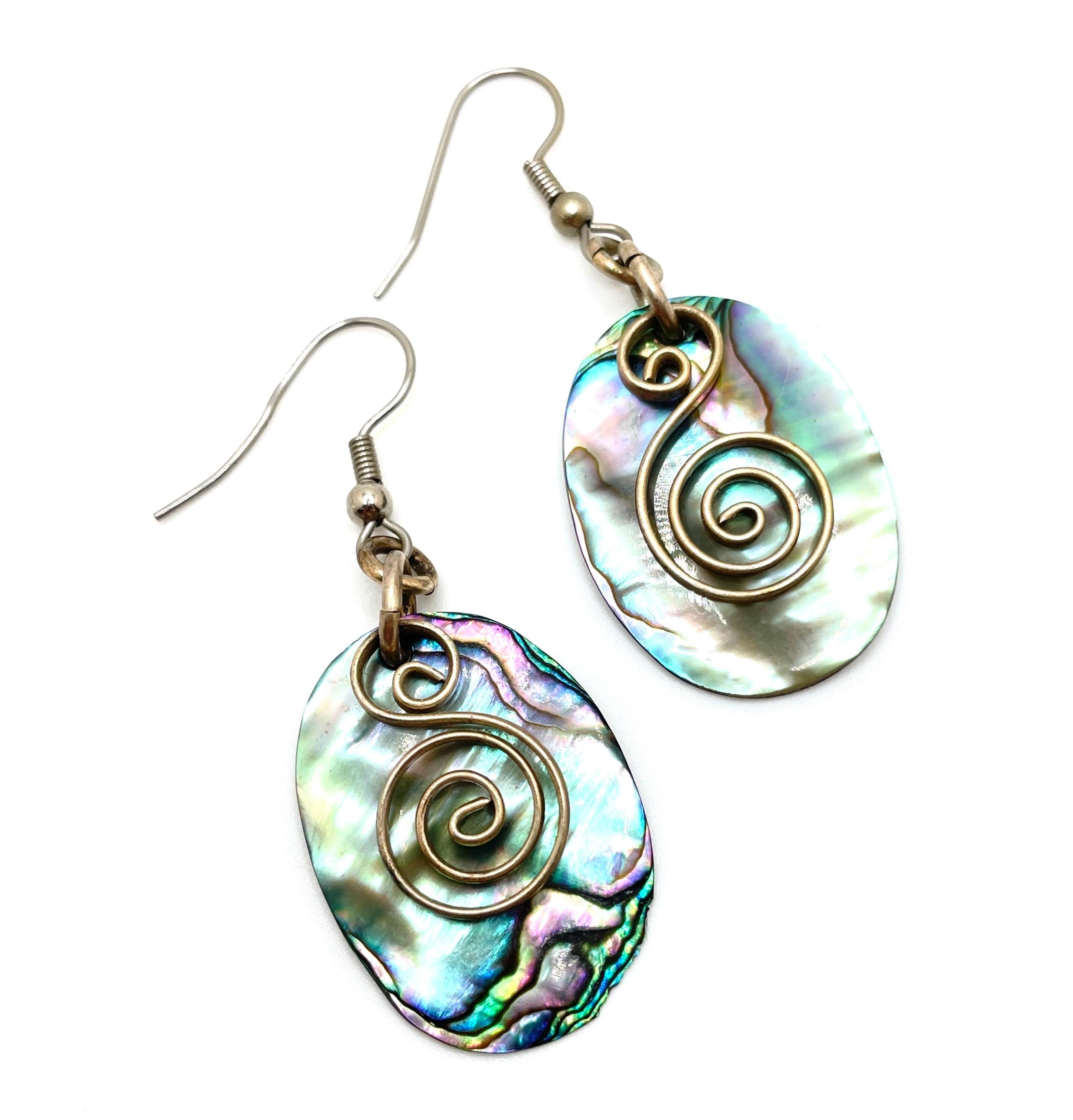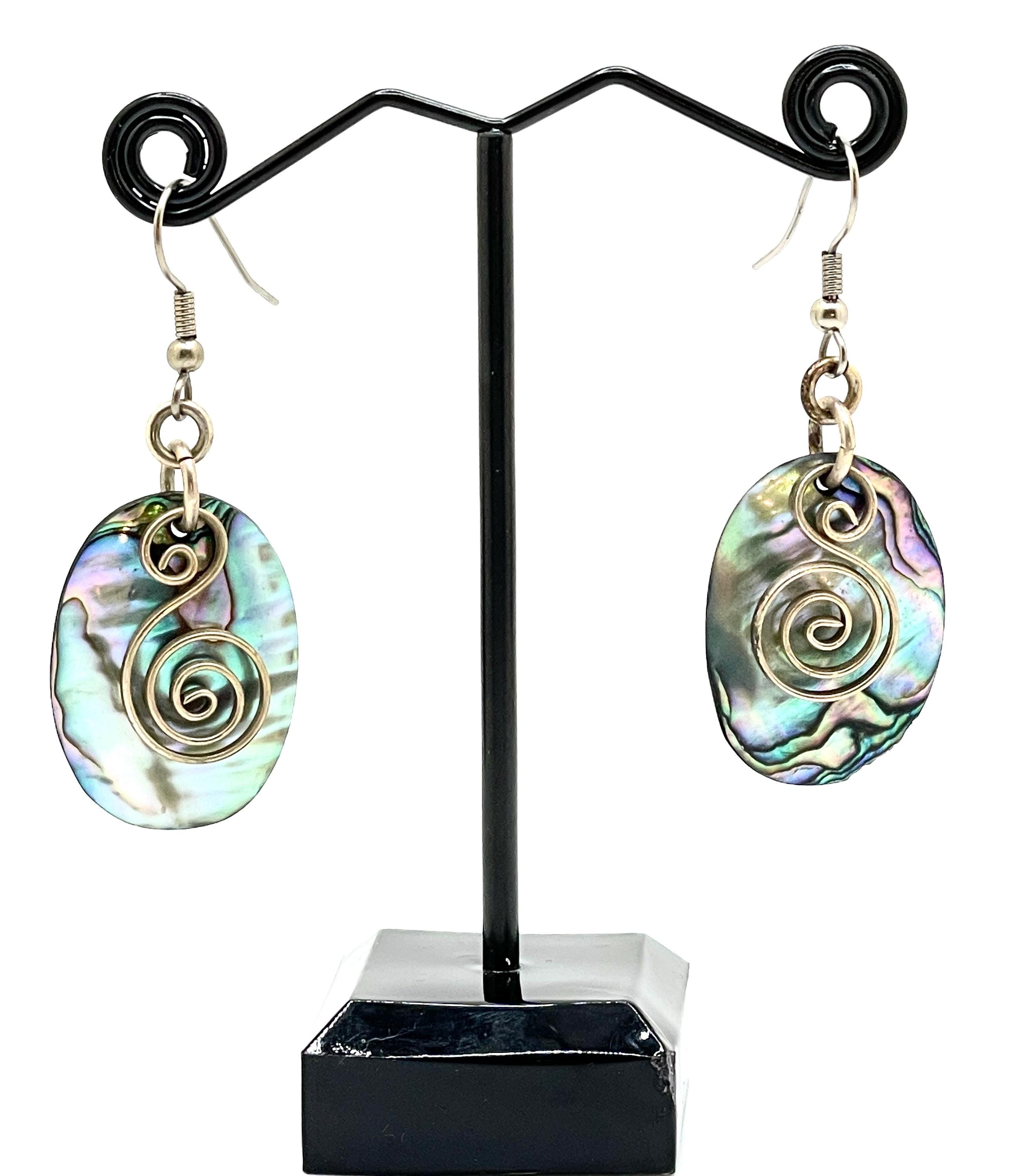 Abalone Oval Spiral Dangle Earrings in 925 Sterling Silver – Boho Spiral Energy Symbol Jewelry