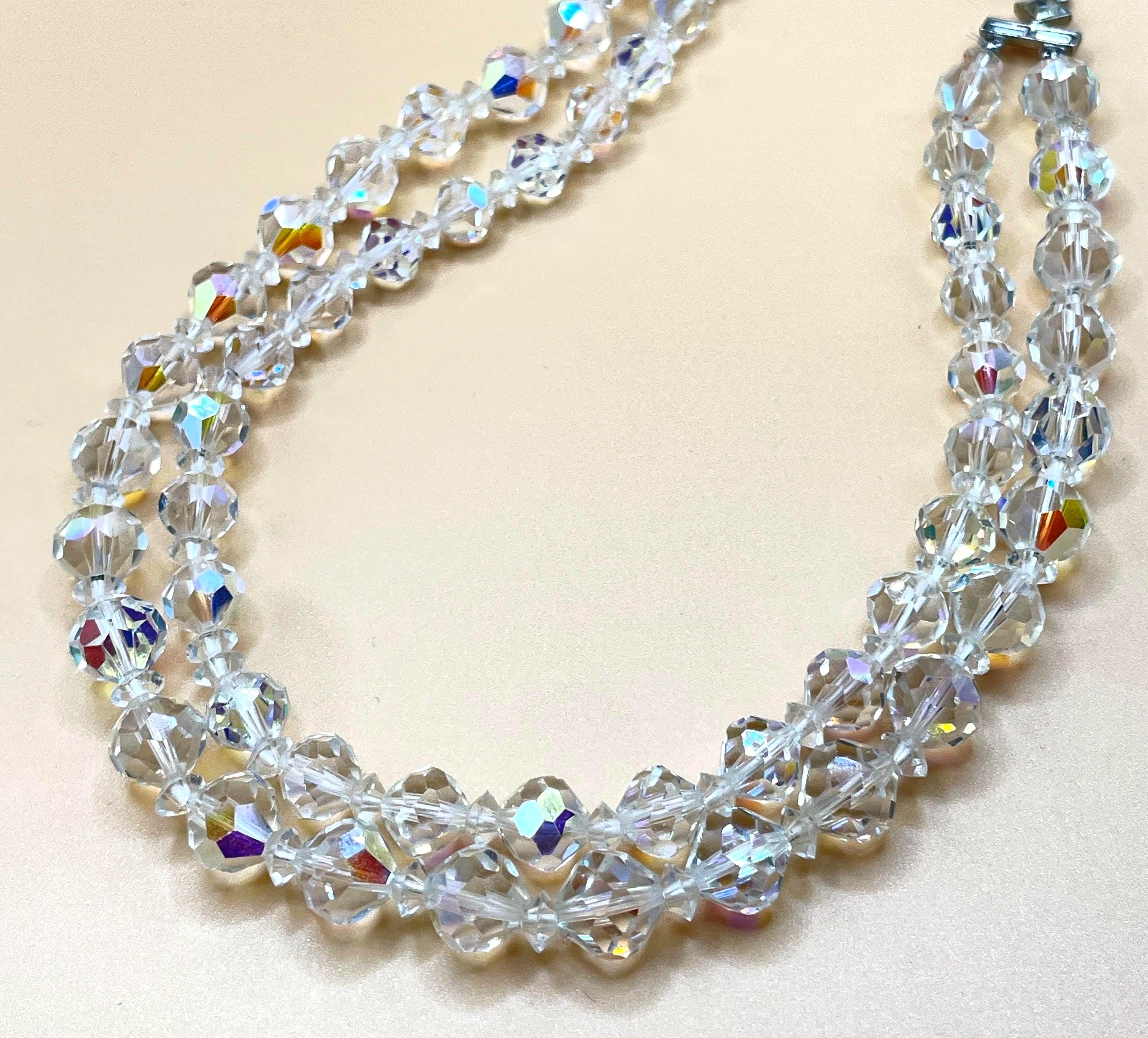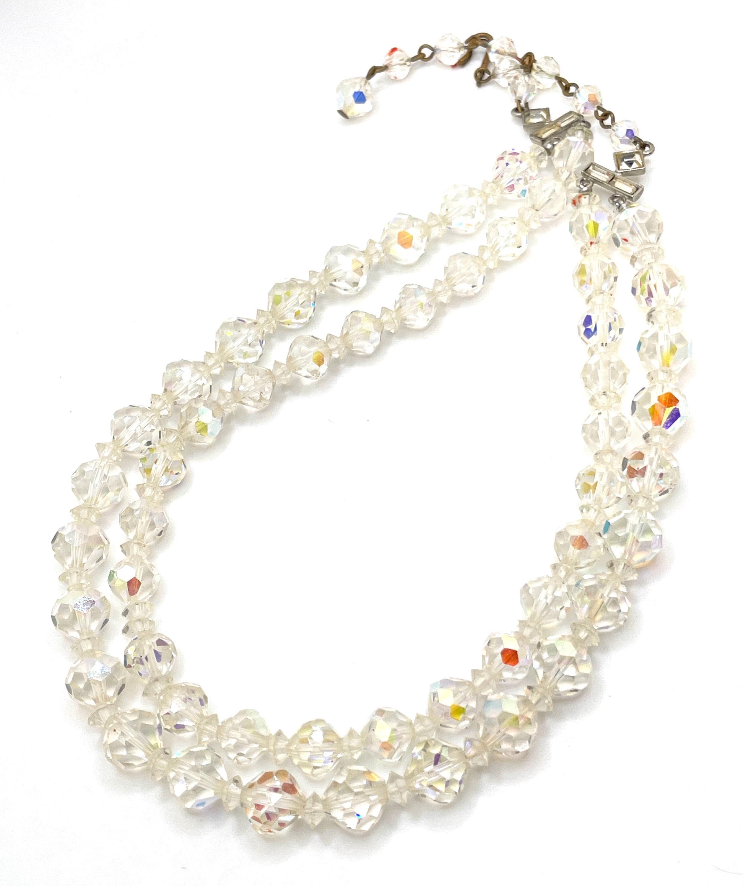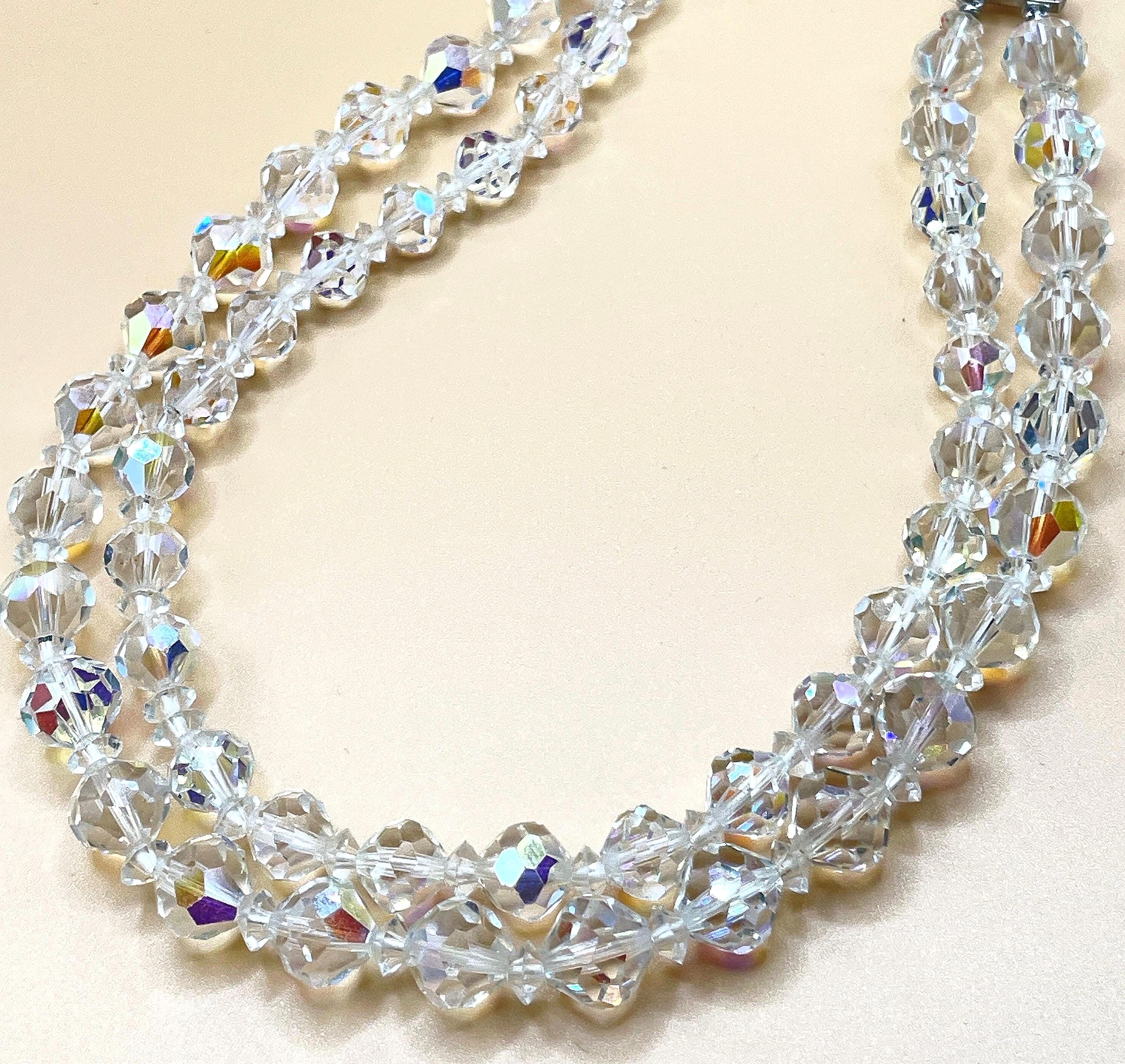 Vintage Aurora Borealis Crystal Glass Bead Choker Necklace – Double Strand – 1950’s