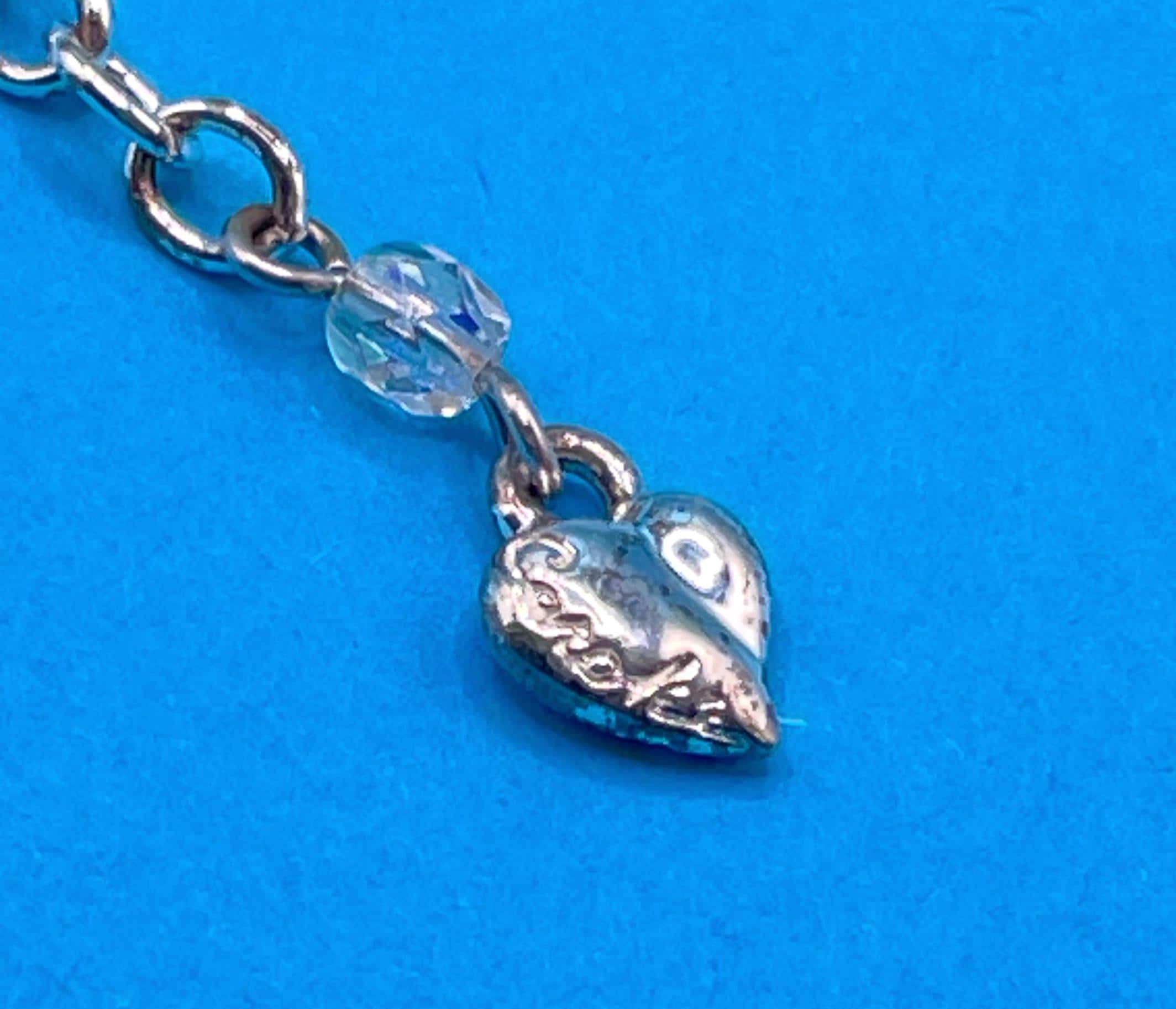β’ Signed: Heart charm at end of chain