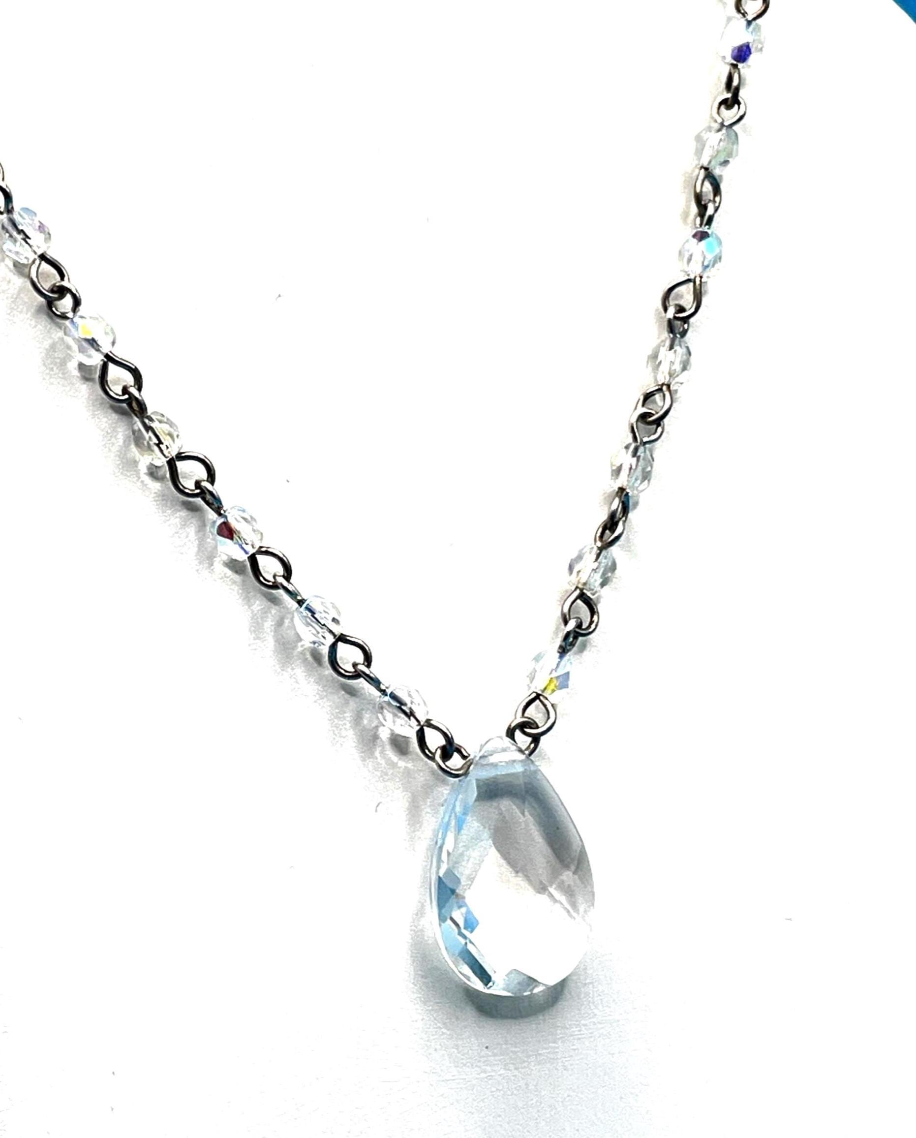 β’ Pendant: Clear faceted teardrop crystal