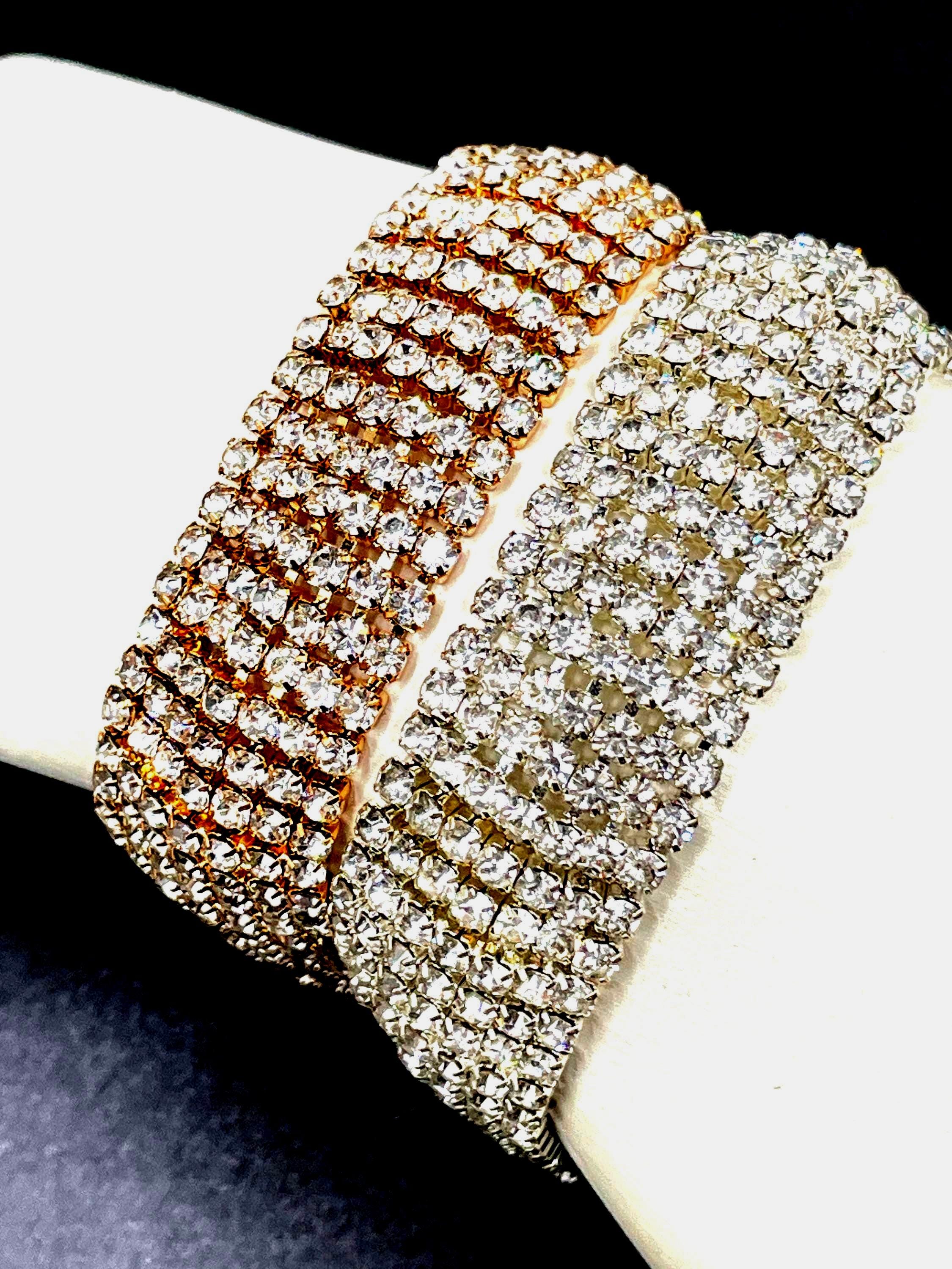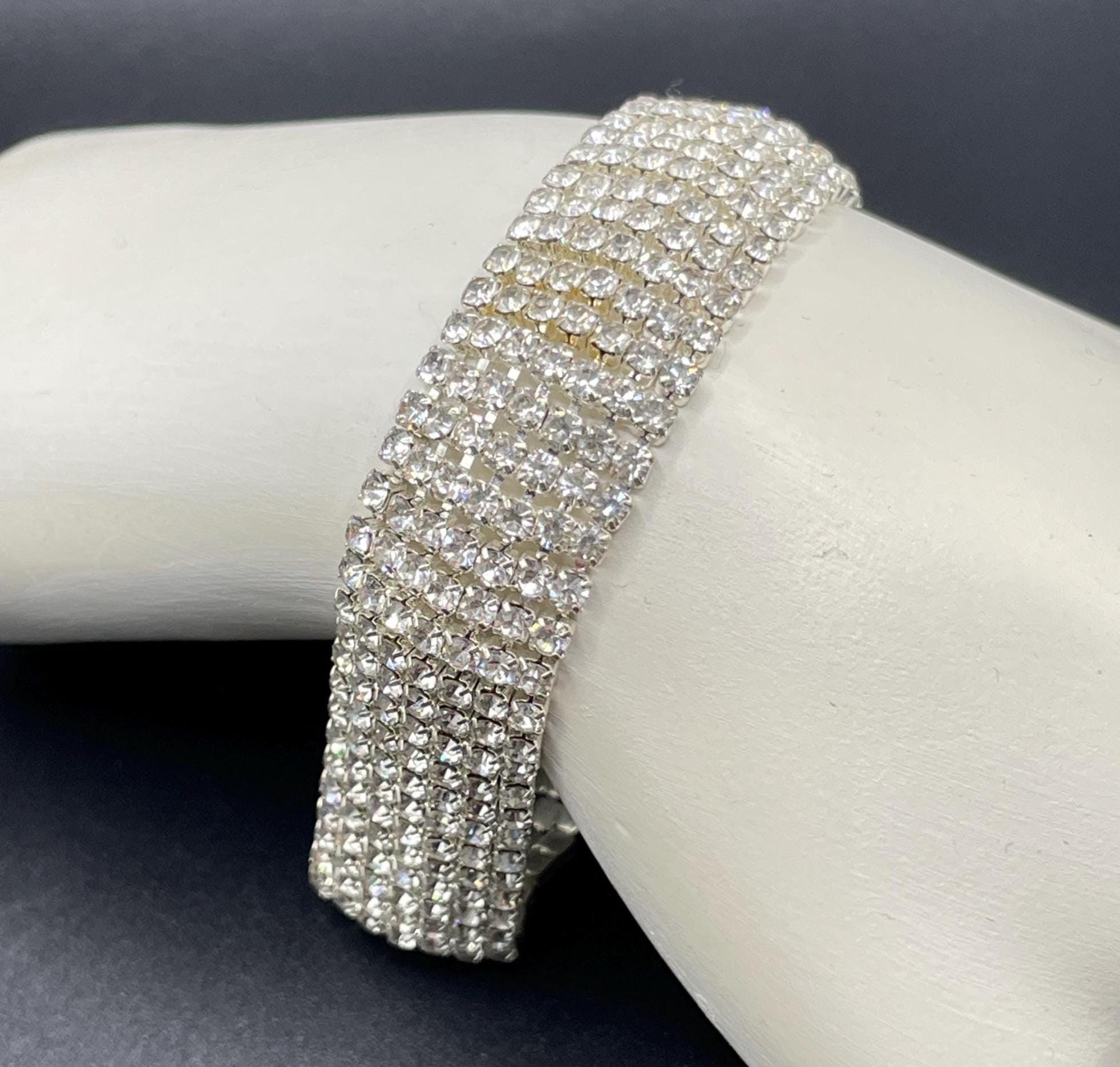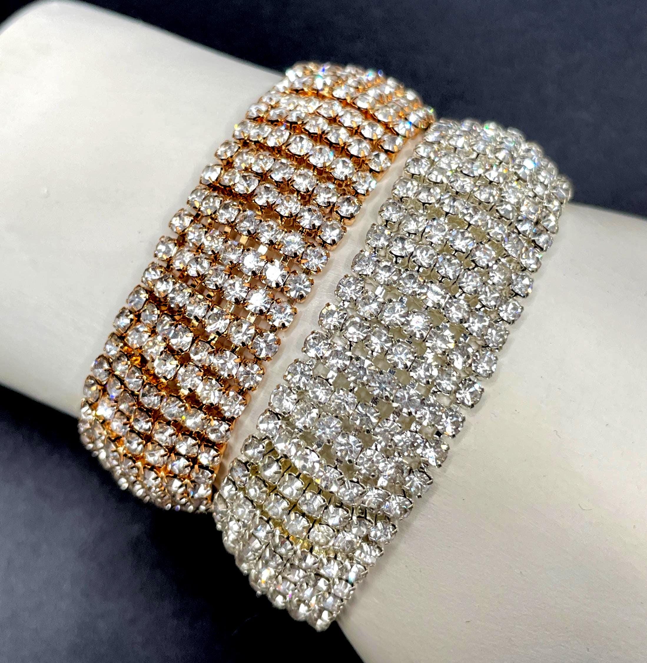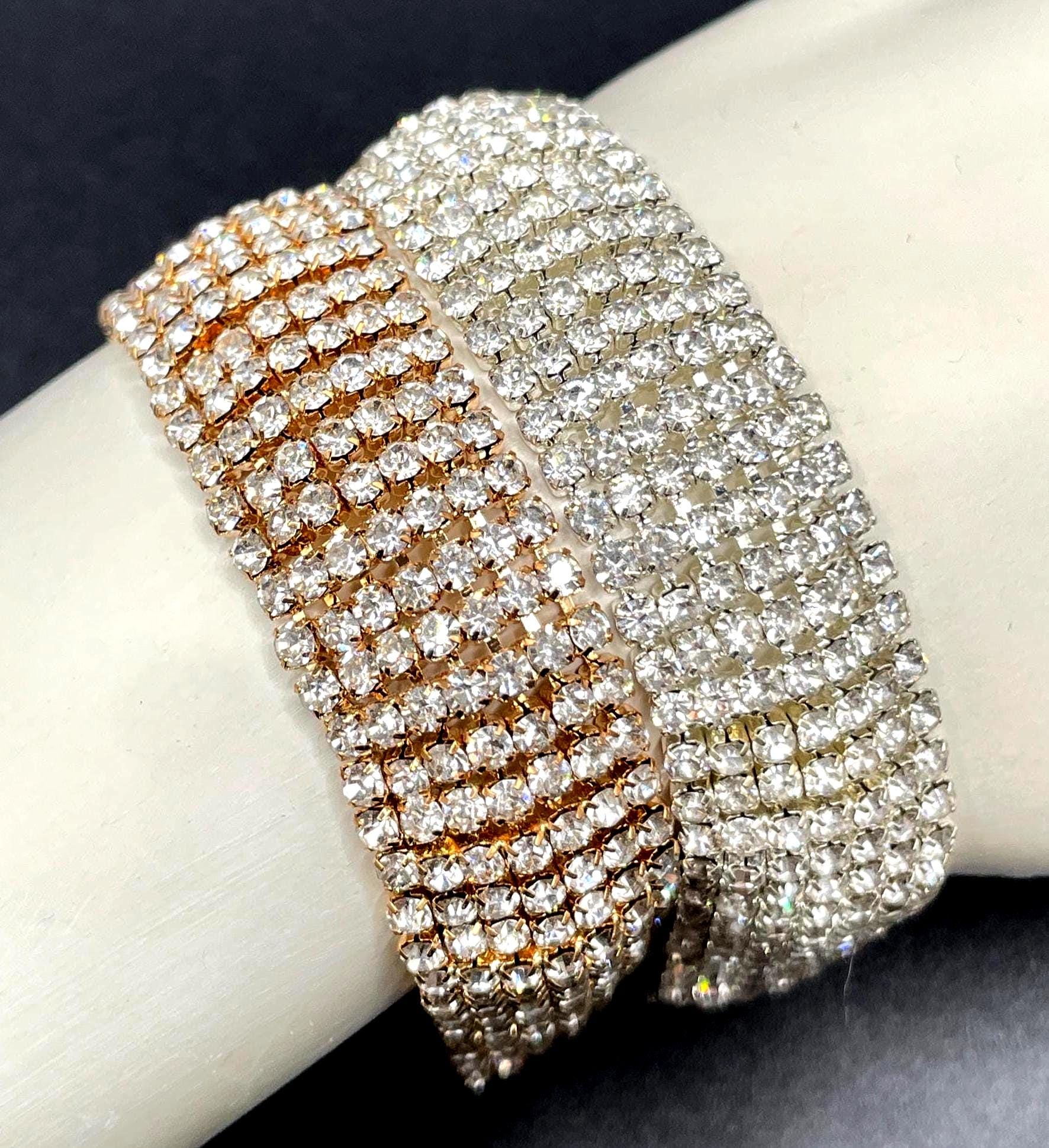 Available in your choice of silver tone or gold tone, each bracelet delivers the same bold shimmer and classic style that works beautifully for evening wear, weddings, holiday parties, or adding a touch of glamour to everyday outfits.