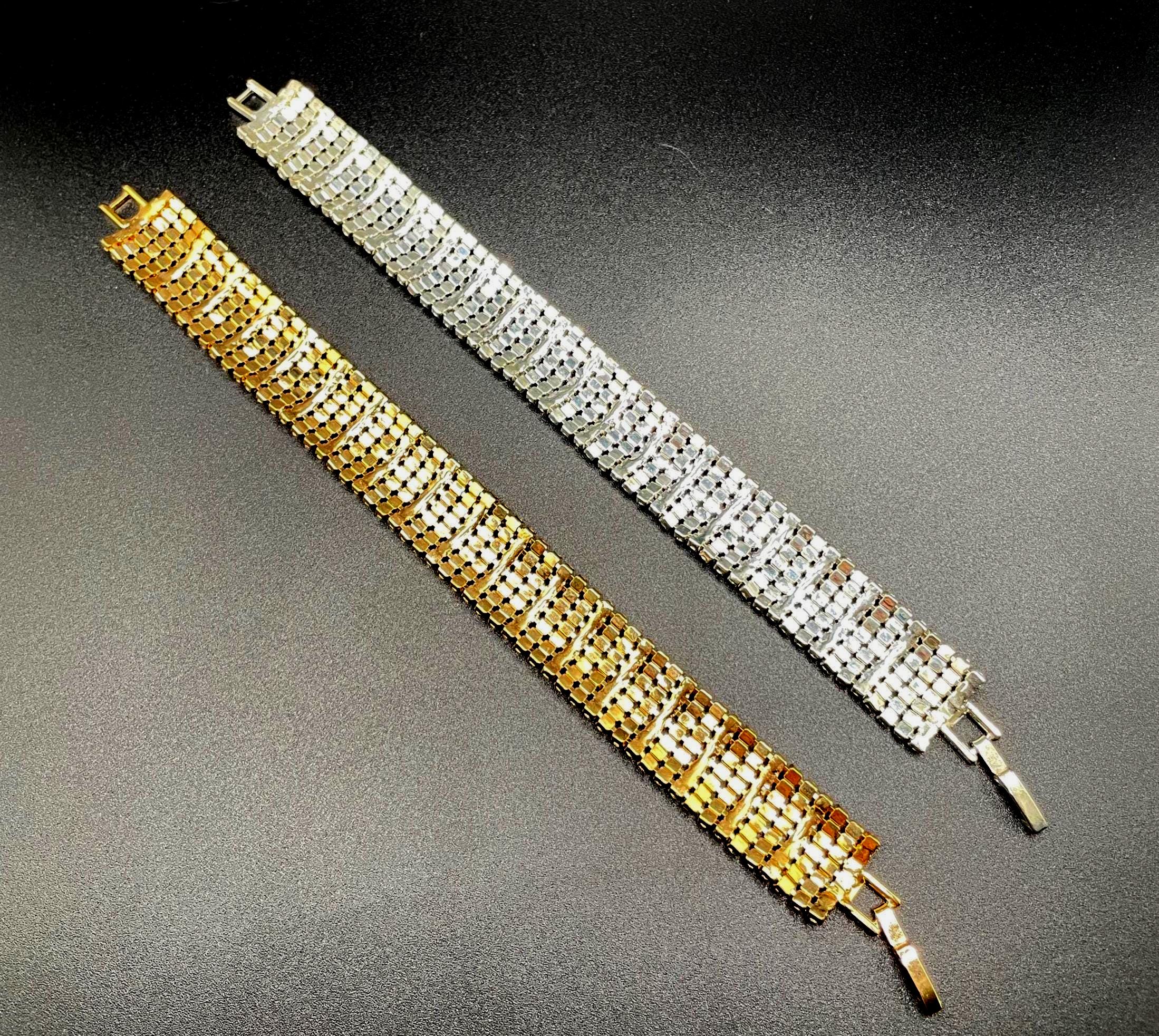Both bracelets are in excellent vintage condition with bright, clear rhinestones and secure settings. Minimal signs of wear consistent with age.