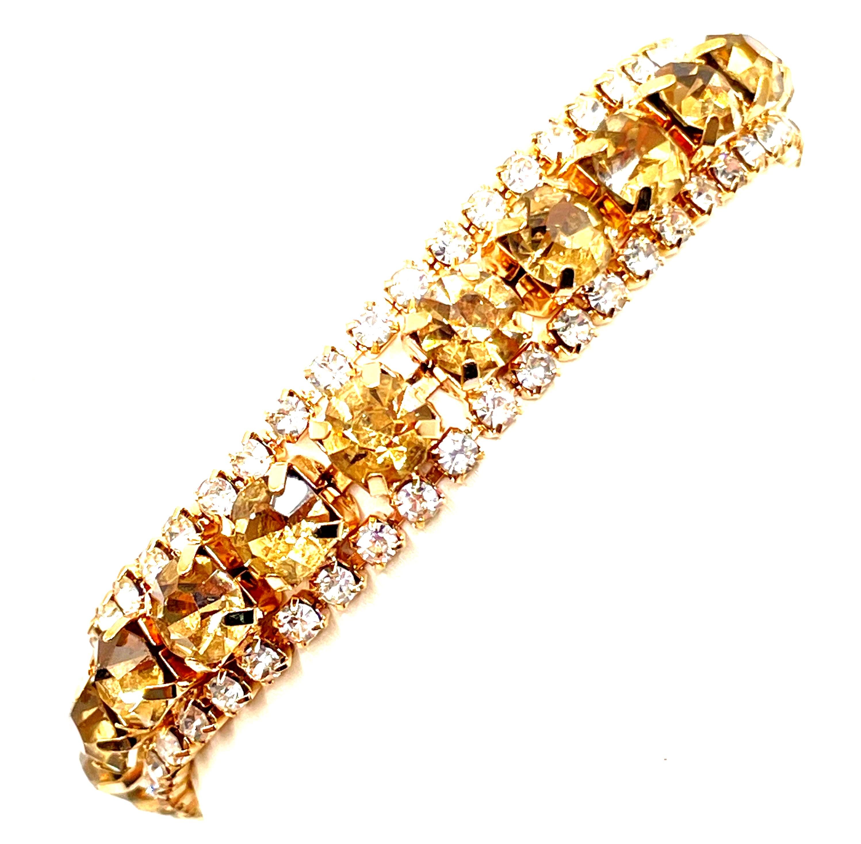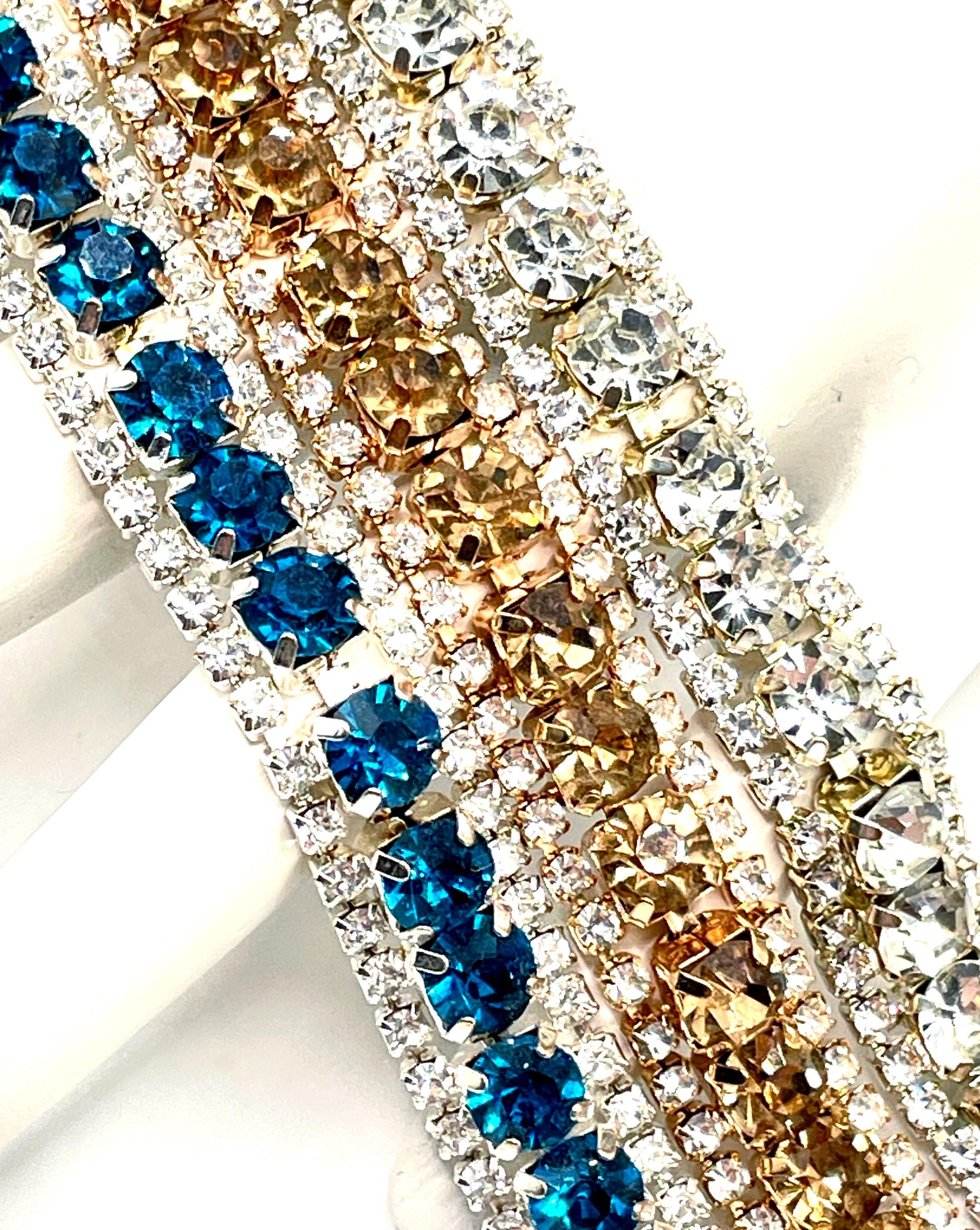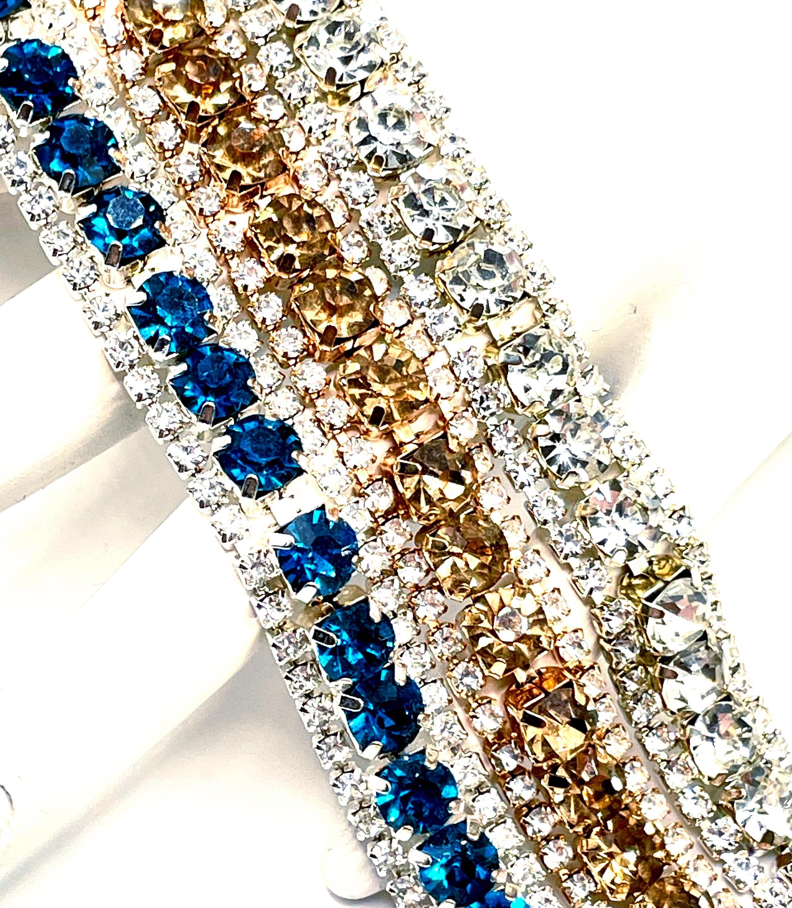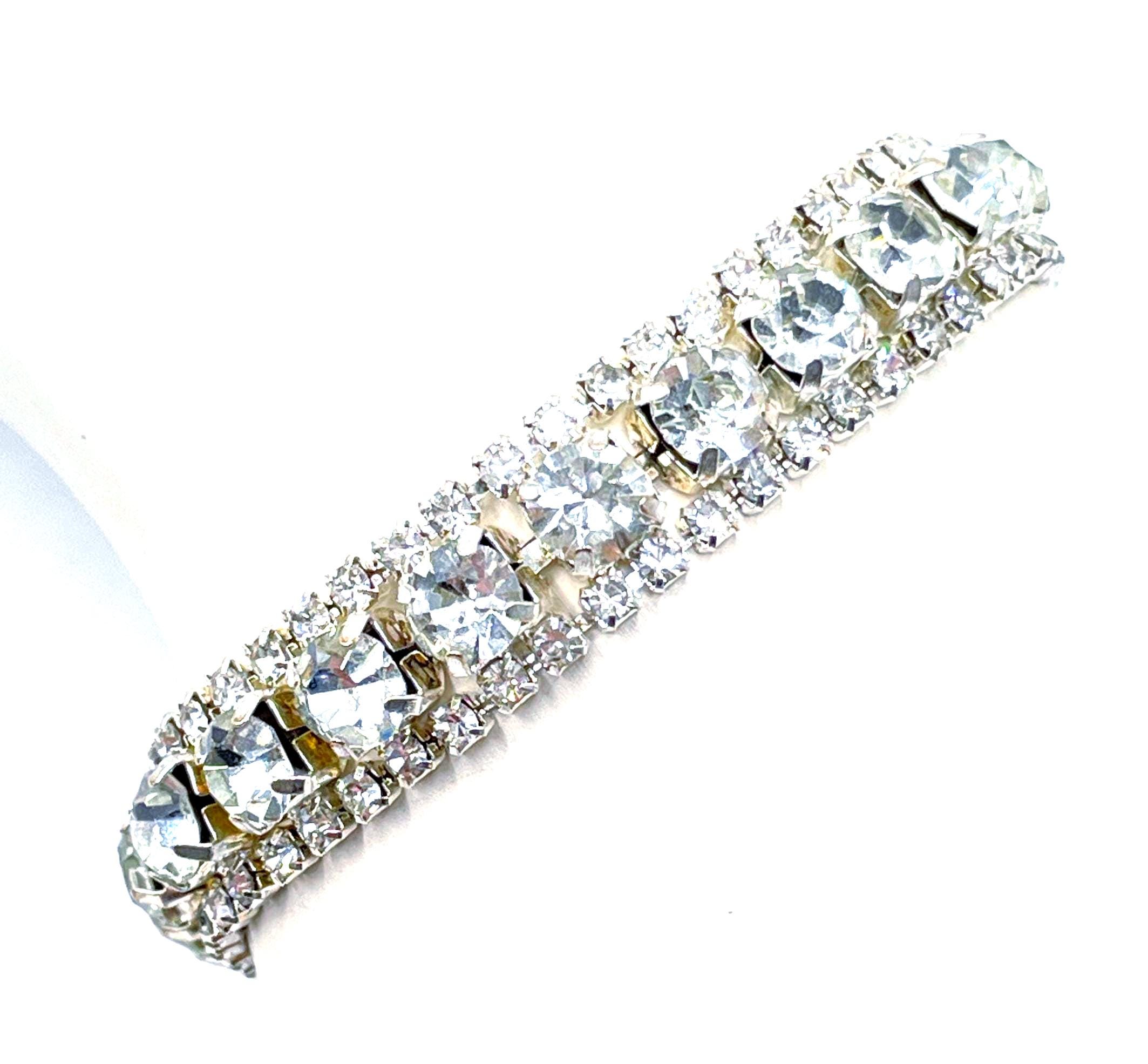 A versatile vintage piece with brilliant sparkle that pairs beautifully with both casual and dressy outfits. Perfect for collectors of vintage rhinestone jewelry or anyone who loves classic tennis bracelet style.