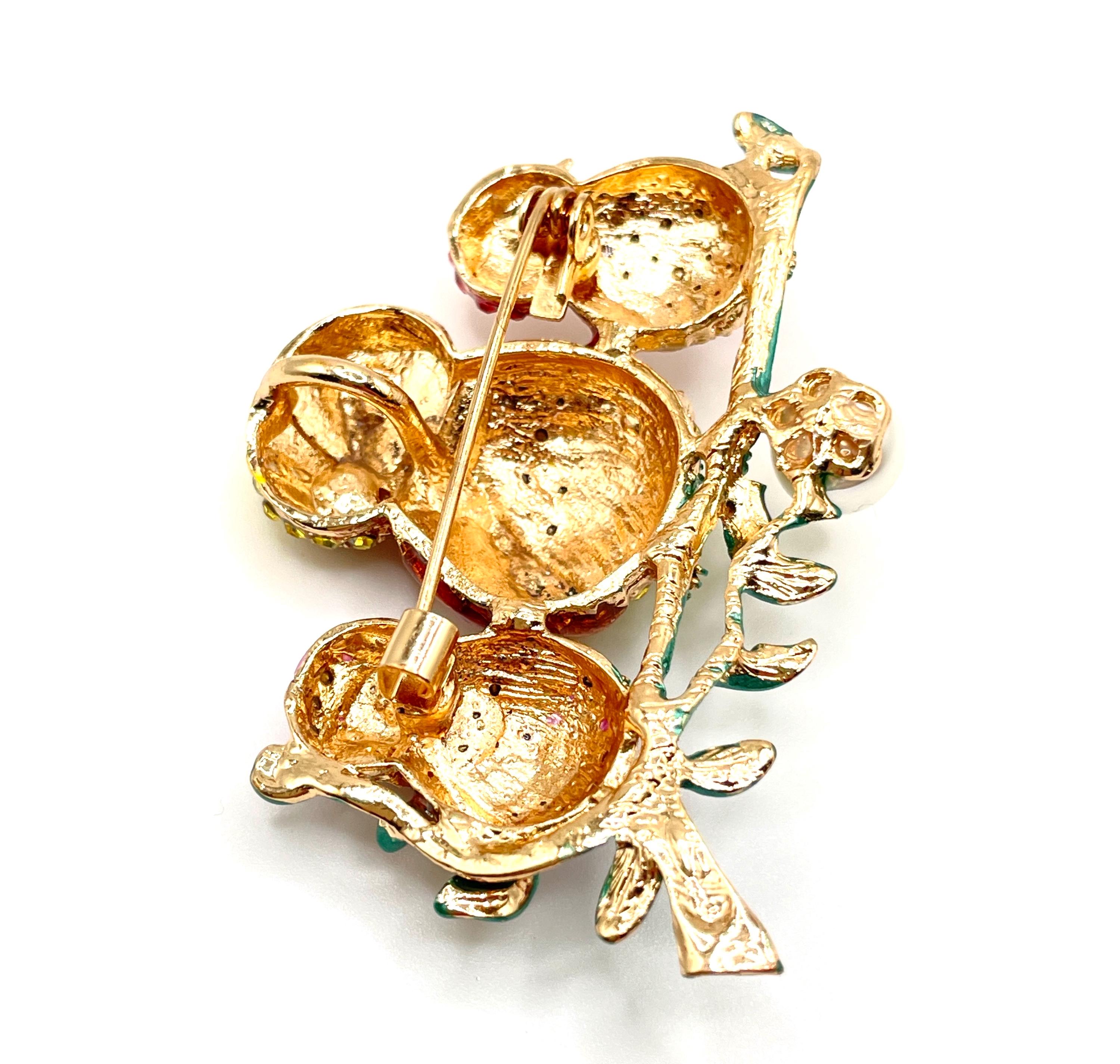 • Colors: Red, yellow, purple, green enamel with clear rhinestones
